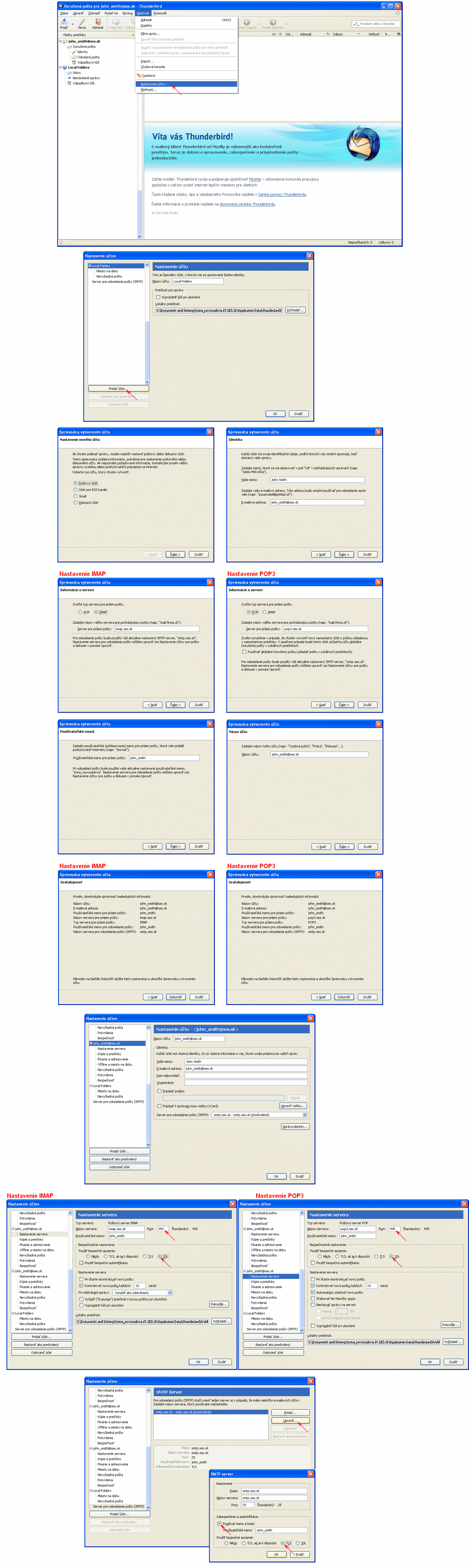 Nastavenia sa líšia pre účet POP3 a pre účet IMAP4.